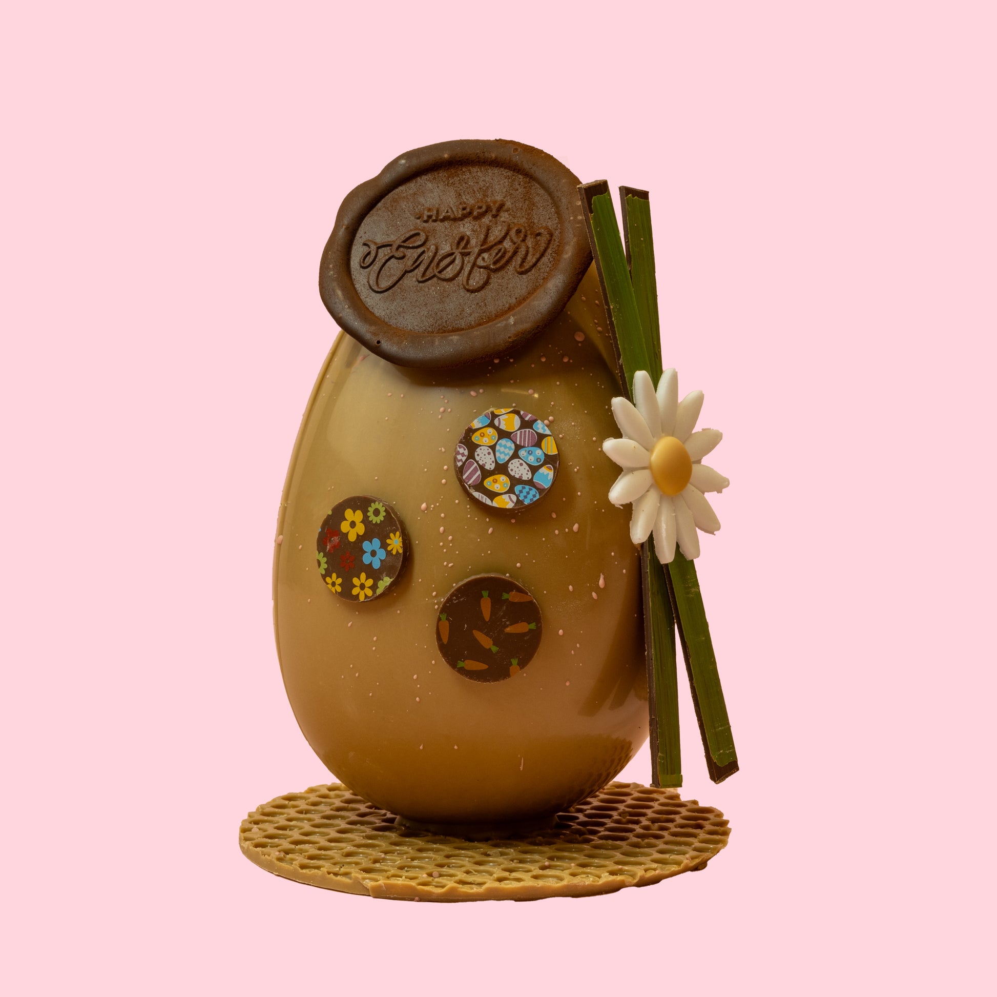 Filled with salted caramel, white chocolate & milk ganache mini eggs, milk honey drops and moulded shapes in dark, milk and caramel chocolate.