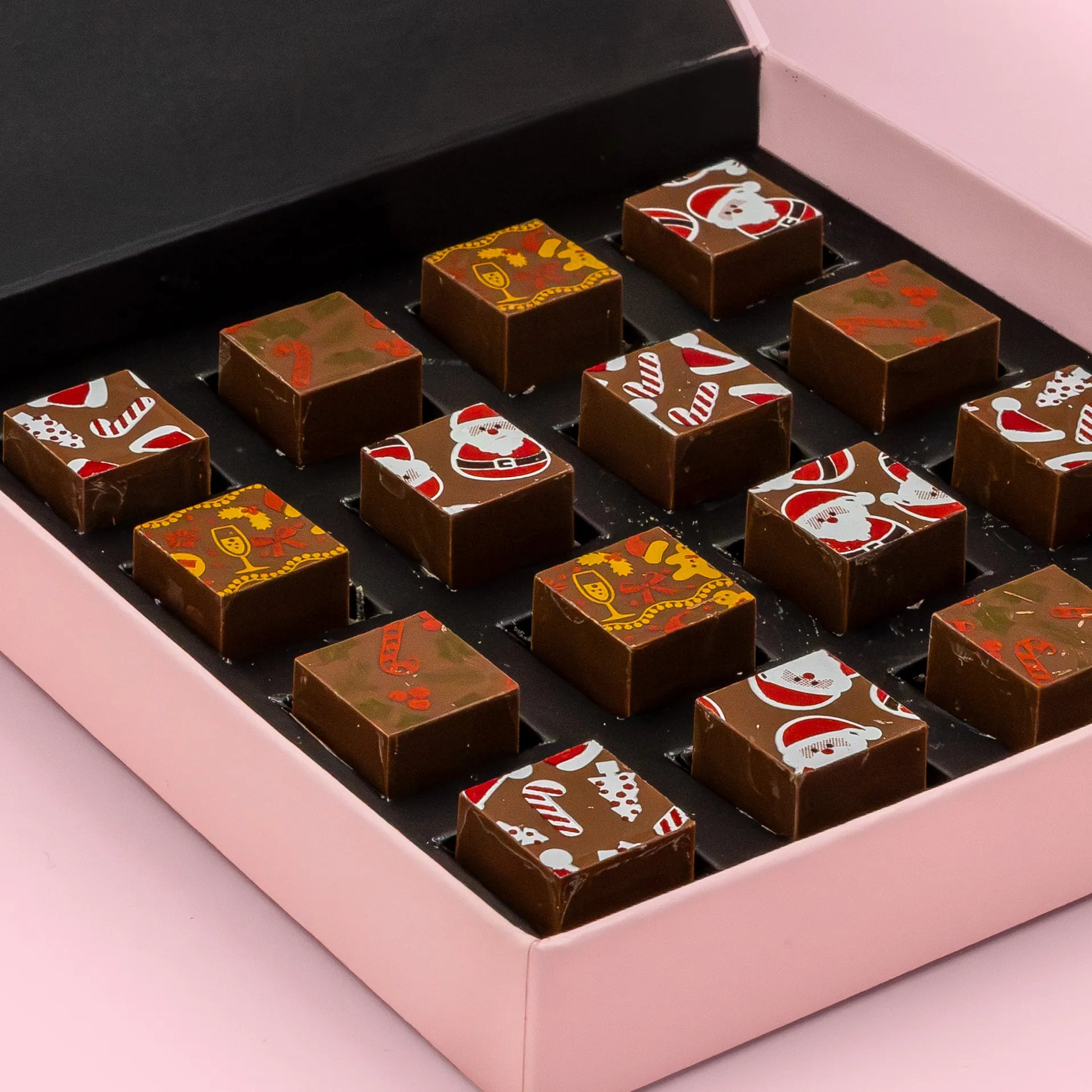 A wonderful giftbox of our Hill St. luxury milk chocolate ganache Christmas cubes. 16 Pieces